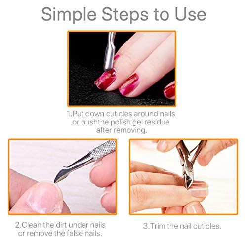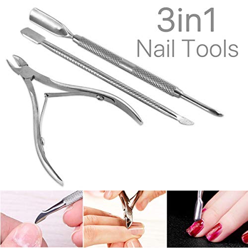 - 3 in 1 Manicure and Pedicure Tool set, including Cuticle Trimmer, Cuticle Pusher and Triangle Nail Polish Scraper. This is a fully functional beauty tool, complete care that suitable for your toenails and fingernails.
