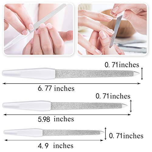 - Size: these nail files have 3 sizes, measure approx. 17.2 cm/ 6.77 inches, 15.2 cm/ 5.98 inches and 12.5 cm/ 4.92 inches, the coarse side is great for shaping nails, doing the job quickly and effectively; It comes with a handy carry pouch, protect the nail file from getting broken, going blunt or wearing out