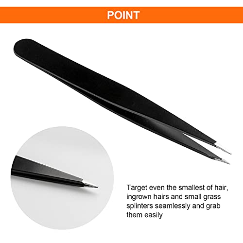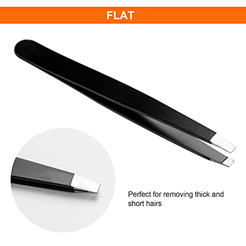 - 【Wide Application】: Pack included flat, angled and pointed tweezers, meet a variety of needs and solve most tweezing issues, Perfect for trim eyebrows, ingrown hair, facial nose hair, false eyelashes, double eyelid tape, splinters, men’s beards and so on.