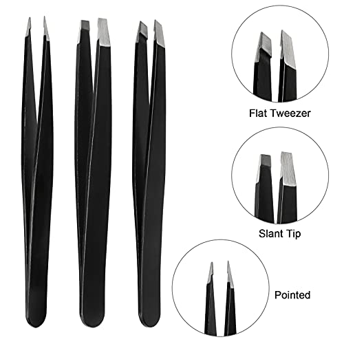 - 【3 Different Tweezers】: 1 x Slanted Head Tweezer, 1 x Straight Head Tweezer, 1 x Pointed Head Tweezer and one small Travel Box
