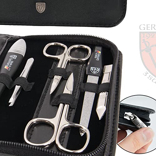 3 Swords Germany - brand quality 10 piece manicure pedicure grooming kit set for professional finger & toe nail care scissors clipper fashion lea 3 Swords Germany - brand quality 10 piece manicure pedicure grooming kit set for professional finger & toe nail care scissors clipper fashion lea