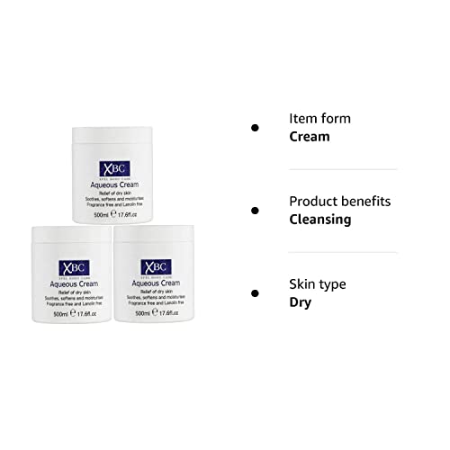 3 x 500ml XBC Aqueous Cream Emollient Large Tub Relief for Dry Skin