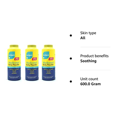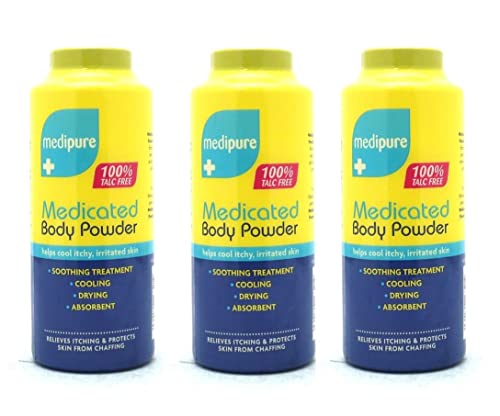 - 3 x Medipure Medicated Body Powder Helps Cool Itchy Irritated Skin 100% TALC FREE 200g Swan household