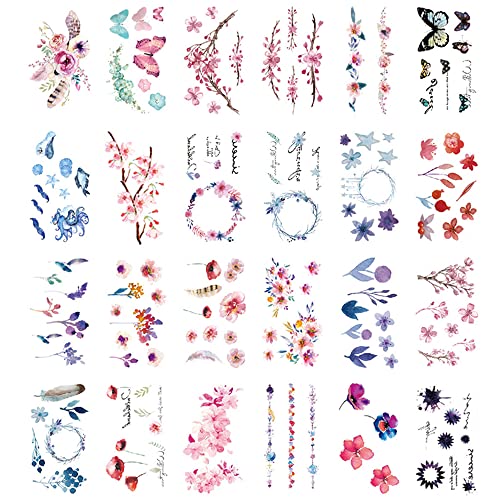 - Include:watercolor Cherry blossoms tattoo,rose tattoo,feather tattoo,butterfly tattoo, garland tattoo,dolphin tattoo,leaves tattoo.