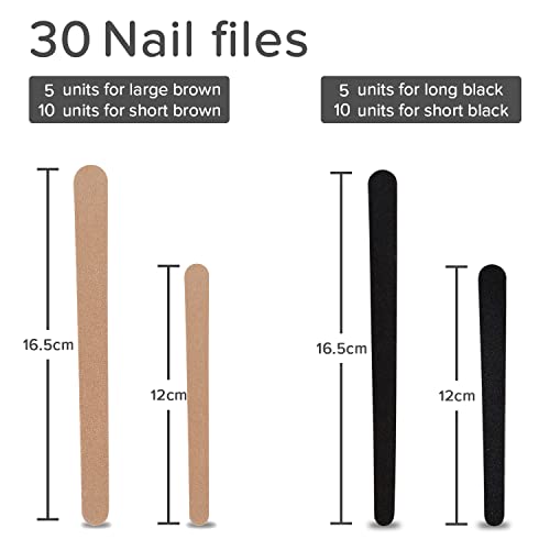 - Thirty pieces per pack, including coarse and fine files. Ideal for both hands and feet.