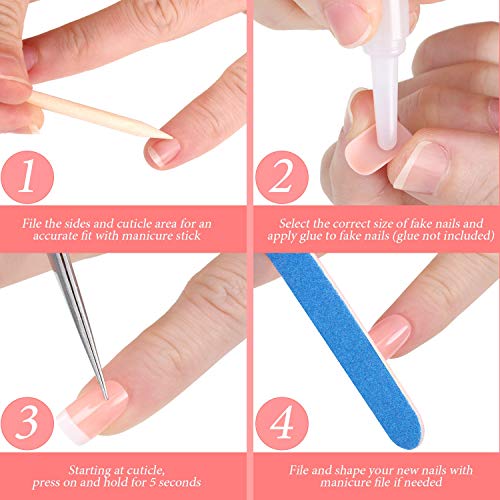 - What you get: you will get 15 sheets french false nails in 12 different sizes (per sheet includes 24 small pieces artificial nail tips), 5 nail files and 5 nail stick, enough quantity and rich size to meet your various needs