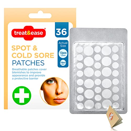 36pk Spot & Cold Sore Patches | 12pcs 8mm & 24pcs 12mm Skin Care Pimple Patches | Acne Patch Hydrocolloid Patches | Face Care Spot Patches | Pimp