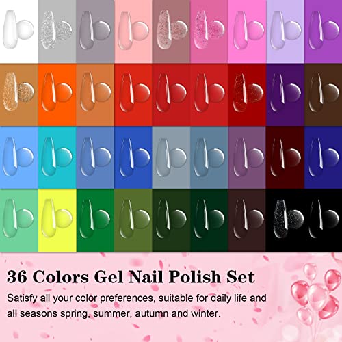 - 💝💅【Colors Gel Nail Polish Set, Ideal Choice for Female Gift】 The gel nail kit is suitable for any holiday or special event, such as Birthday, Anniversary, Christmas, Valentine's Day, Mother's Day gifts ect. There are 36 colors, so you don’t need to make a lot of effort to decide which color you should choose. The color gel nail polish can be used to design charming and glittering nail at will. The nail polish set is a perfect gift to make your girlfriend, wife and mother happy.