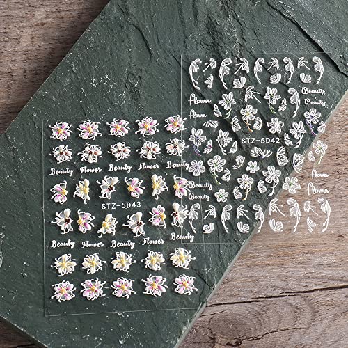 3D Embossed Spring Flowers Nail Art Stickers Decals 4 Sheets 5D Self-Adhesive Pink Cherry Blossoms Floral Nail Supplies Nail Art Design Decoratio 3D Embossed Spring Flowers Nail Art Stickers Decals 4 Sheets 5D Self-Adhesive Pink Cherry Blossoms Floral Nail Supplies Nail Art Design Decoratio