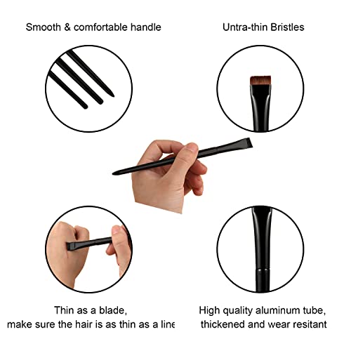 - Professional and Practical: 2pcs professional-grade angled eyeliner brushes for shaping and defining eyebrows and eyeliner. An ultra-thin flat eyeliner brush for grooming the eyeliner. Angled and flat brushes in different widths help you create the finest, most precise lines on different eye and lash areas.