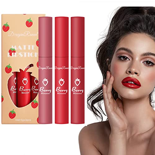 - 👄 Quality Lip Gloss: The 3 colors Velvet Liquid Lipstick Set has 3 color styles with soft creamy texture does not fade. The applied lip gloss will dry out due to the matte velvet effect.