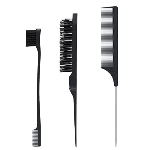 - 💝【Size and Packaged Information】: You will receive 3 combs of different sizes, including 1 pcs 23cm/9.02inch pin tail comb, 1 pcs 22.3cm/8.78inch bristle brush, and 1 pcs 17.5cm/6.89inch double-sided edge brush, easy to carry, they won't take up much room in your handbag or backpack and you can use them while you're on errands or traveling.