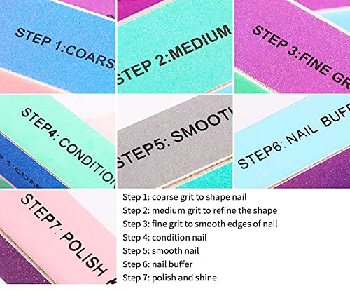- 【Premium Design】7 Surfaces In 7 Different Colors Showing 7 Sides Different Level Of Grit Designed Which Allows You To Buff And Shine Your Fingernails With Just One Nail File.