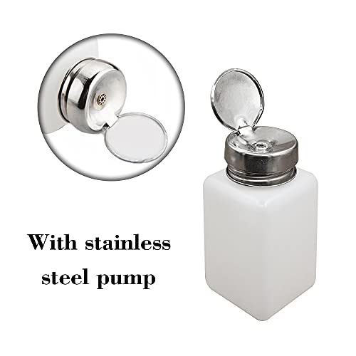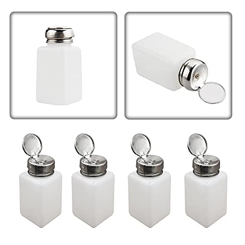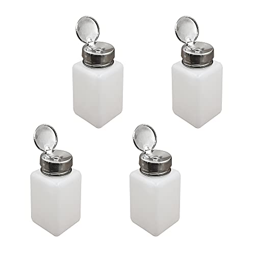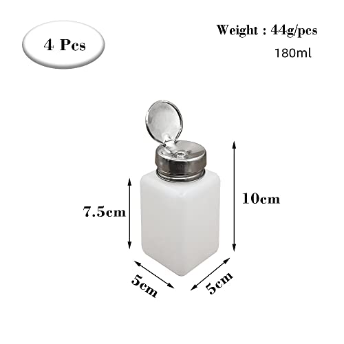 - 【Package includes】You will get 4 pcs of 180ml push-down pump bottles with a bottom of about 5x5 cm and a bottle height of about 7.5 cm. It can be used for alcohol, nail polish remover, alcohol, makeup remover, etc.