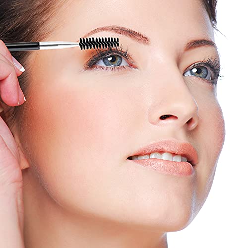 - Double head design- Angled brush and spoolie brush the 2 in1 eye brow brush, one is eyelash / eyebrow brush, and second slanted eyebrow brush. The slanted end of the brush is suitable for applying and grooming the eyebrows, spoolie brush finishes off the look by shaping, combing and blending the brow.