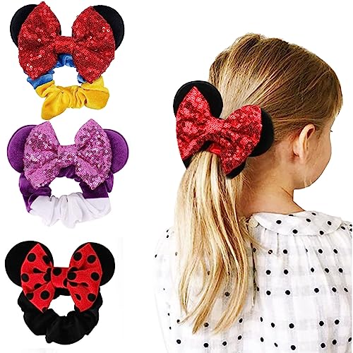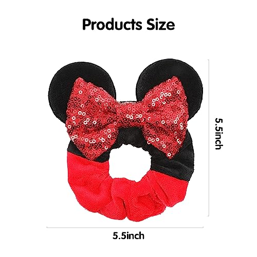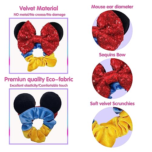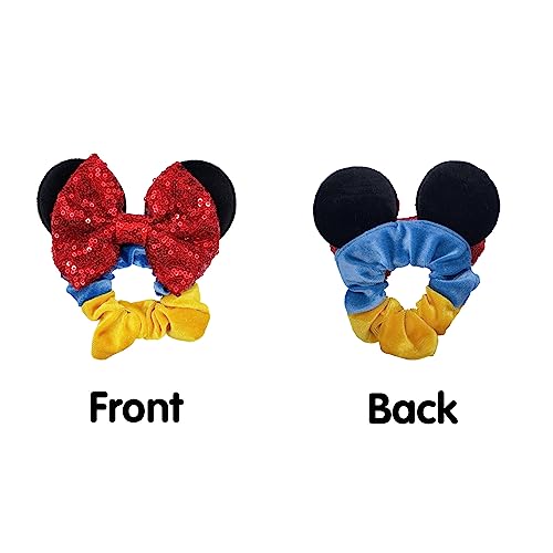 - Package Included: 4 pcs mouse ears scrunchies. Red, Ivory, Blue, Yellow, 4 different colors for you to match the different outfits.