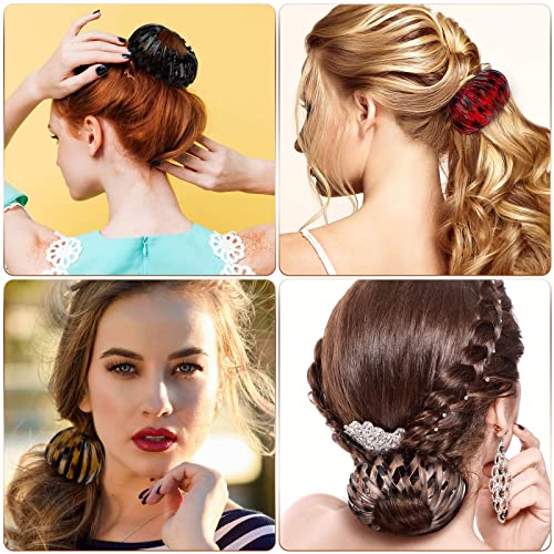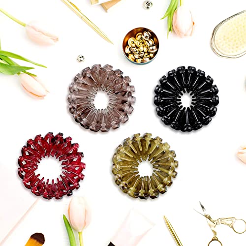 4 Pieces Vintage Geometric Retractable Hair Loops Expandable Ponytail Holder Clip Bird Nest Shaped Hair Clips Hair Accessory Hair Donut Bun Maker