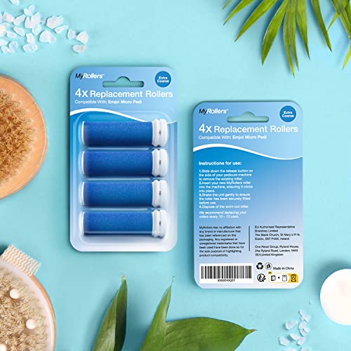 - 4️⃣4 ROLLERS PER SET – Each package comes with 4 My Rollers replacement rollers compatible with all Emjoi Micro Pedi handles, ensuring your pedicure set stays always refilled. Choose from three coarseness levels including extra coarse, extreme coarse and super coarse to suit your needs and maintain healthy-looking feet, completely pain-free.