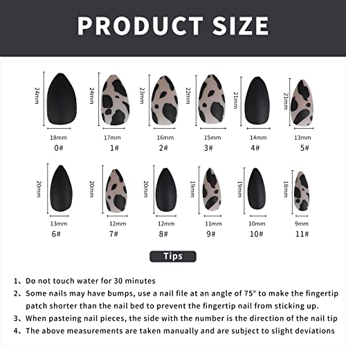 - 【48PCS ALMOND SHAPED PRESS ON NAILS】The package contains 48 pieces of different size press on nails and the necessary tool kit: glue, wooden stick, gel, nail file, alcohol cotton. No matter how big your nails are, you can choose the most suitable fake nails for each finger.