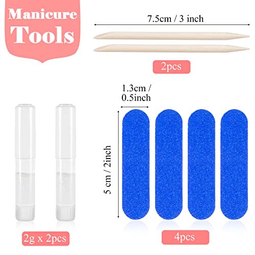 - Value Package - The set includes 48pcs fake toe nails tips, 4pcs nail files, 2pcs wooden cuticle pushers and 2 tubes of glue. Various nail tools to meet all your needs in nail art decoration.