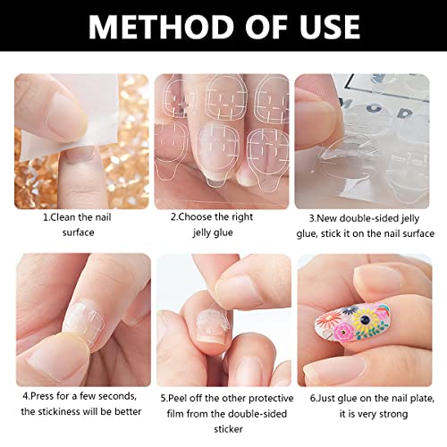 • Features: These clear nail adhesive stickers are made of soft gel, Breathable False Nail Tabs Adhesive Strong is easy to operate, quick to put on, fits seamlessly, won't hurt your nails, it has good adhesion and strong stickiness. Easily create glamorous nails.