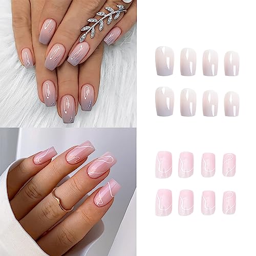 - 【Press on nails 】Our artificial nail tips are made of ABS material, which is lightweight and durable. It is non-toxic, no smell, no harm to your health. Our package with 48pcs fake nail tips and 24pcs jelly glue, meet the needs of tools required by your DIY.