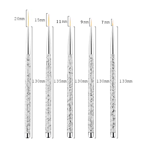 - Packing Includes: Our nail design brush contains a total of 5 nail pens.which has 5 different sizes: 7/9/11/15/20mm, which is very suitable for drawing different patterns.