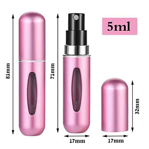 - Package: 5 Pcs 5ml refillable perfume atomiser in 5 different colours: black, blue, silver, pink, rose red, different colours great for taking the all your favorite perfume on holiday,giving as gifts or sharing with family and friends.