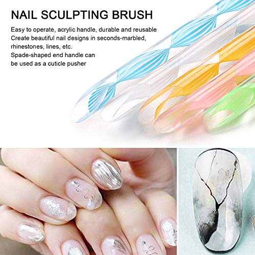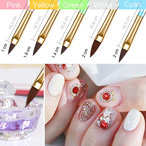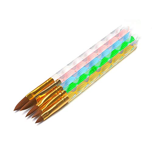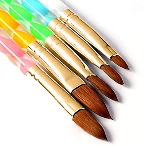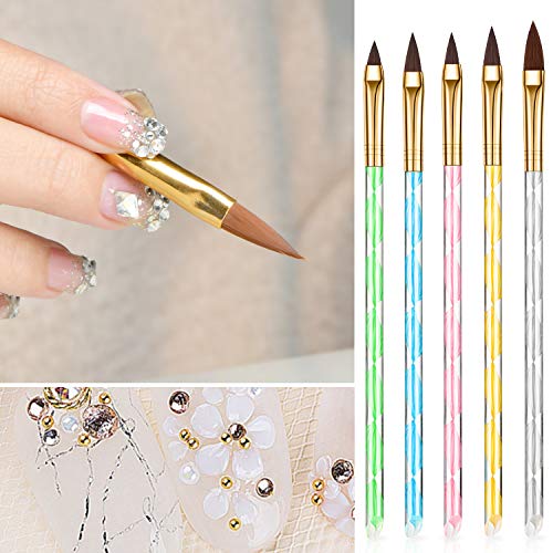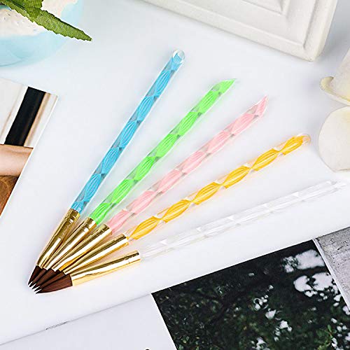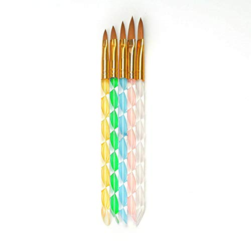 - Set of 5 acrylic nail brushes in 5 different sizes. The spade-shape end handle can be used as cuticle pusher.