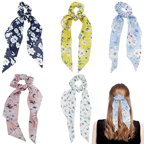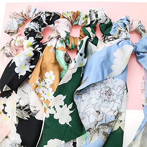 - 【Multiple Wearing Methods】: 2 in 1 design, 1pc elastic hair band and 1pc long hair scarf, this long scarf scrunchies for hair could be used separately, it can be used for hand decoration , dresses decoration or handbag decoration, etc.