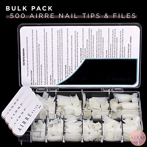 - 💖 ► PURCHASE INCLUDES ◄ 500 AIRRE False Nail Tips (half-well/half-cover), 4 AIRRE 100/180 Nail Prep Files with Box/Case