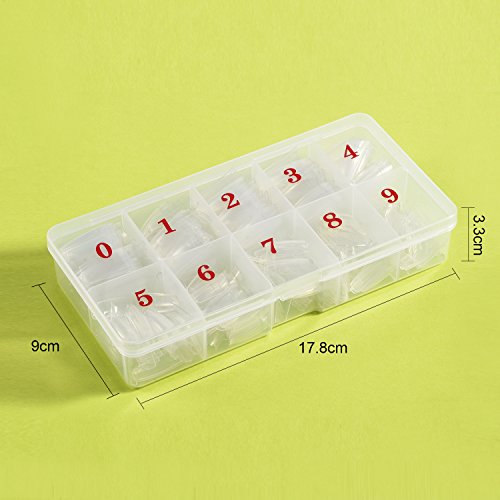 - Quantity: come with 500 pieces false nails in a clear box, provides 10 different sizes for you to choose, 50 pieces for each size, suitable for most people