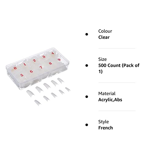500 Pieces Acrylic Artificial False Nail DIY UV Gel Acrylic False Nail Art Tips (Translucent Natural French)