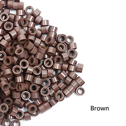 500pcs 5.0X3.0X3.0mm Silicone Micro Rings Links Beads for Hair Extensions (Dark Brown)