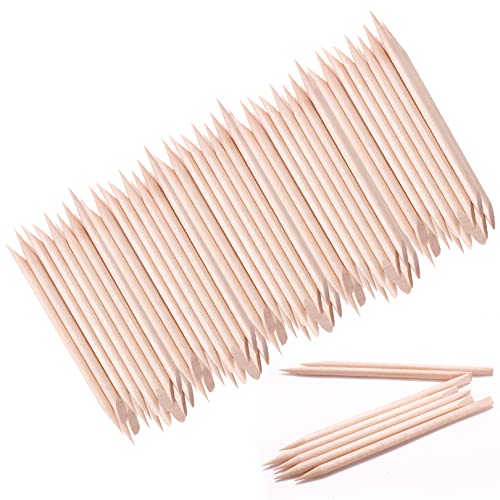 50PCS Orange Wooden Nail Stick,Double-End Wood Cuticle Pusher Remover Nail Cleaning,Multi-Functional Cuticle Pusher Wood Sticks Remover Manicure