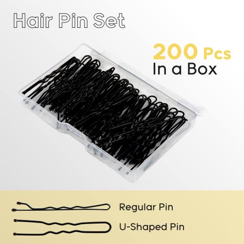 5FFM Pack of 200 Bobby pins,Premium Black Hair Clips with storage box, perfect hair styling accessory for all hair types(Rust free), 130.0 grams,