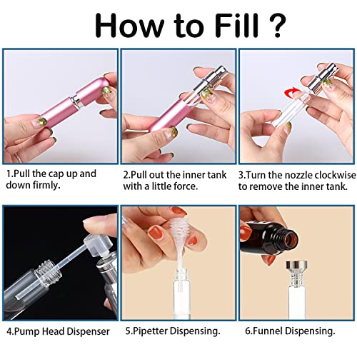 - 👍【What You Get】: 5Pcs 5ml perfume travel bottle; 1Pcs 3ml silver metal funnel; 2Pcs 3ml pipette; 2Pcs perfume diffuser pump. With a pipette,funnel or perfume diffuser pump,you can quickly refill your mini empty perfume bottle in seconds.