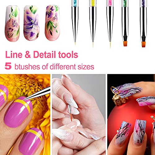 - 💋【PACKAGE INCLUDE】10 different brush heads fully meet the requirements of nail art design. 5pcs nail art brushes including 3pcs brushes for drawing lines, and 2pcs flat brushes