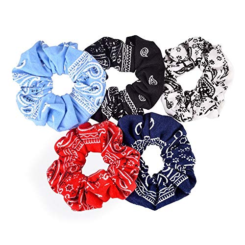 - Package includes: 5Pcs classic bandana print scrunchies; Choose from different colors to match your outfit