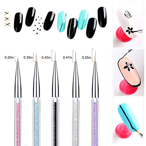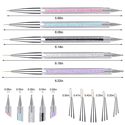 - 💖【PACKAGE INCLUDE】Nails art brush, 5pcs nail art liner brushes pen with 5 different size:5.98/6.06i/6.14/,6.18/6.22inch,5 different colours::pink/blue/black/white/purple