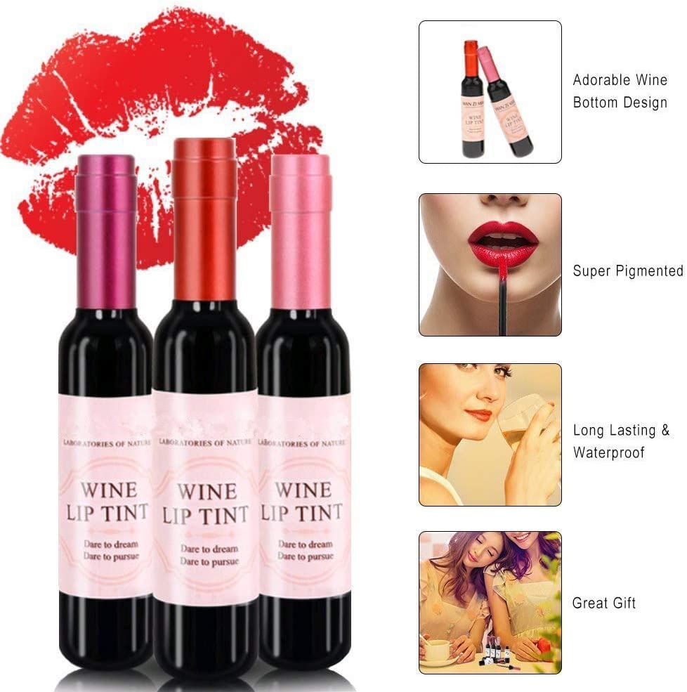 - 👄❤ADORABLE PACKAGING❤ Unique packaging design of beyond cute wine bottle shape, 6 colors lip tints available