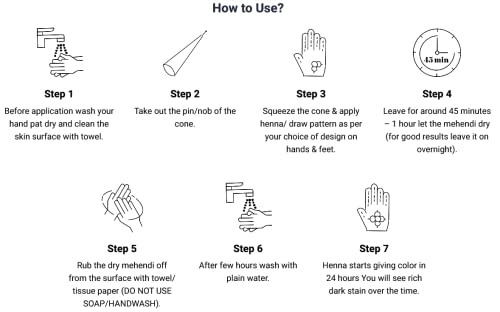 6 Fresh Quality Kaveri Dark Brown Natural Henna Mehndi Cones Temperory Tattoos