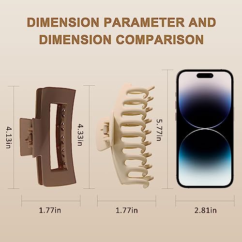 - 【ONE SIZE FITS ALL】The 4.3"claw clips is big enough to hold large sections of thick hair, but still close tightly. Will not hurt the scalp or pull down your hair. These claw clips are perfect for any type of hair including thick, thin, curly, fine and more.