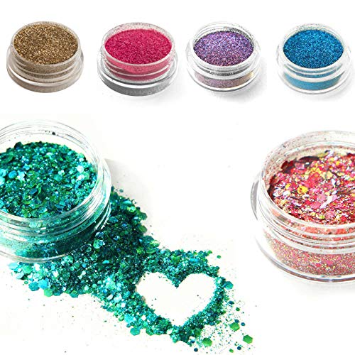 6 Pack of Biodegradable Eco Glitters - incl 2 CHUNKY! - Cosmetic Grade
