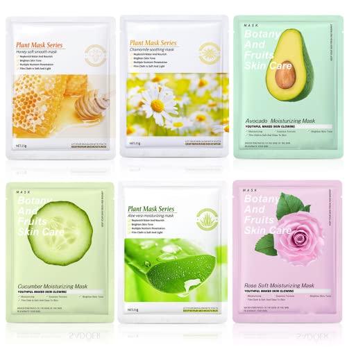 - 【Face Masks Beauty Natural Ingredients】The 6Pcs Fruit Extract Facial Mask Set uses natural ingredients, including Aloe Gel, Honey Extract, Chamomile Extract, Cucumber Extract, Avocado Extract,Rose Extract,which is natural and mild, does not hurt the skin.Closer to the needs of the skin, and more comfortable to use.