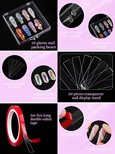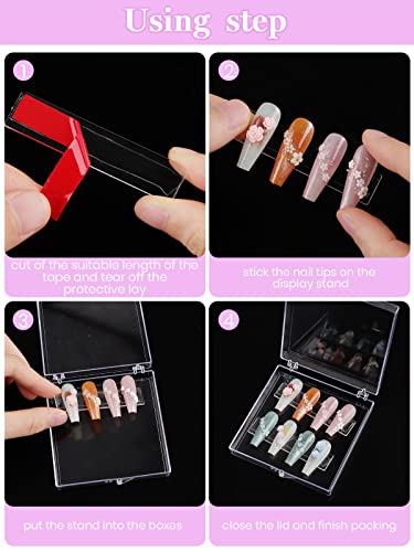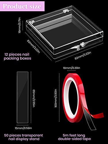 - 【Nail Packaging Box Set】: You will receive a perfect press on nail packing box set, including 12pcs packing boxes, 50pcs transparent nail stand holders and 1 roll 5m long double-sided tape, sufficient quantities will meet your daily requirement. Please note that false nail tips are not included.