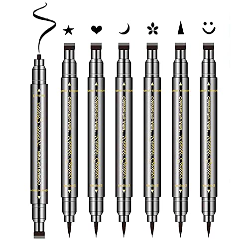 6Pcs Erinde Double-headed Liquid Eyeliner Stamp Pen Set, Eye Liners for Women, Eyeliner Pencil Black Eye Liner Stencil, Eyeliner Tattoo Tool, Eye