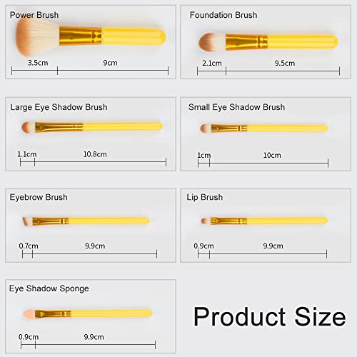 - 【Makeup Brush Set】 This set includes 7 PCS makeup brushes,power brushes, foundation brushes, lip brushes, large eye shadow brushes, small eye shadow brushes, eyebrow brushes, eye shadow sponge.These are the most common types of makeup brushes and can meet a variety of your makeup application needs.