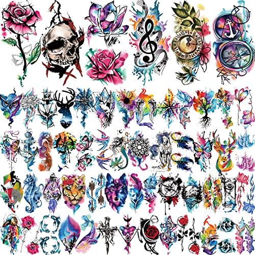 Home Make Up 77 Sheets Temporary Tattoo, 17 Sheets Half Arm Flower Dream Catcher Cat Goldfish Fake Tattoos for Adults Shoulder Neck, 60 Sheets Tiny Waterproof