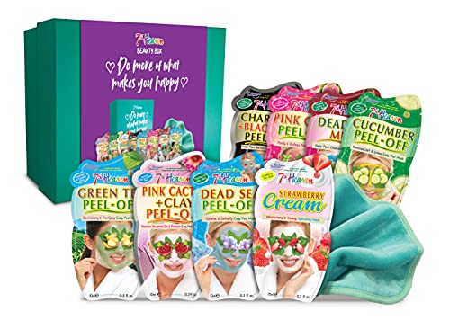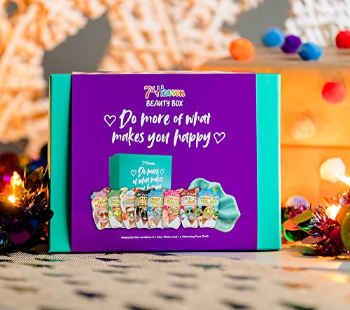 7th Heaven 'Beauty Box of Treats' Skincare Gift Set - Contains 8 Face Masks, Soft Cleansing Face Cloth and Decorated Keepsake Box